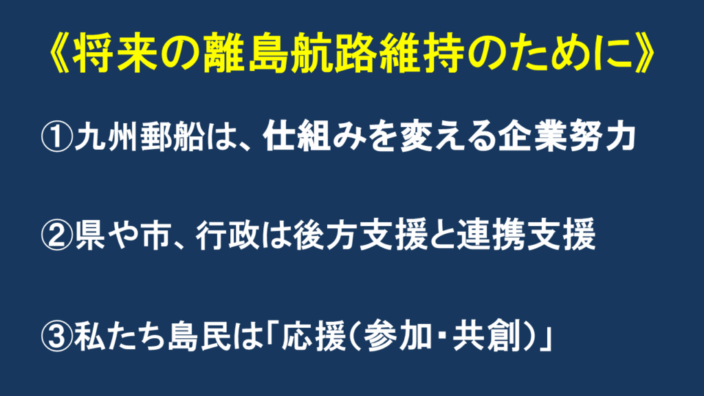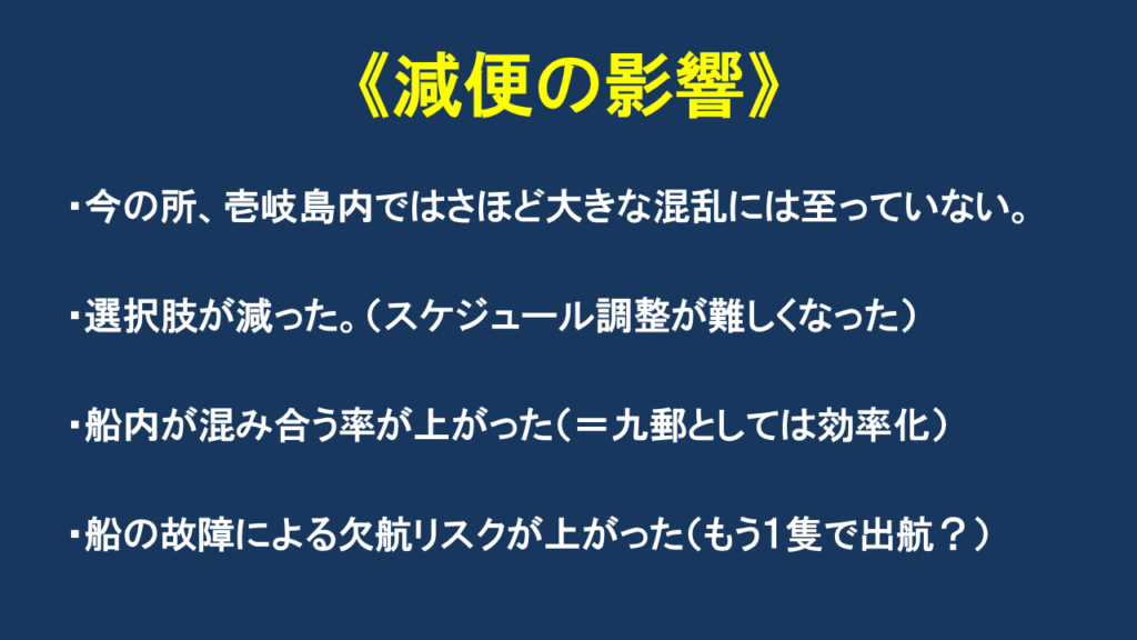 これは壱岐だけでなく、すべての離島航路に通じることだと思います。