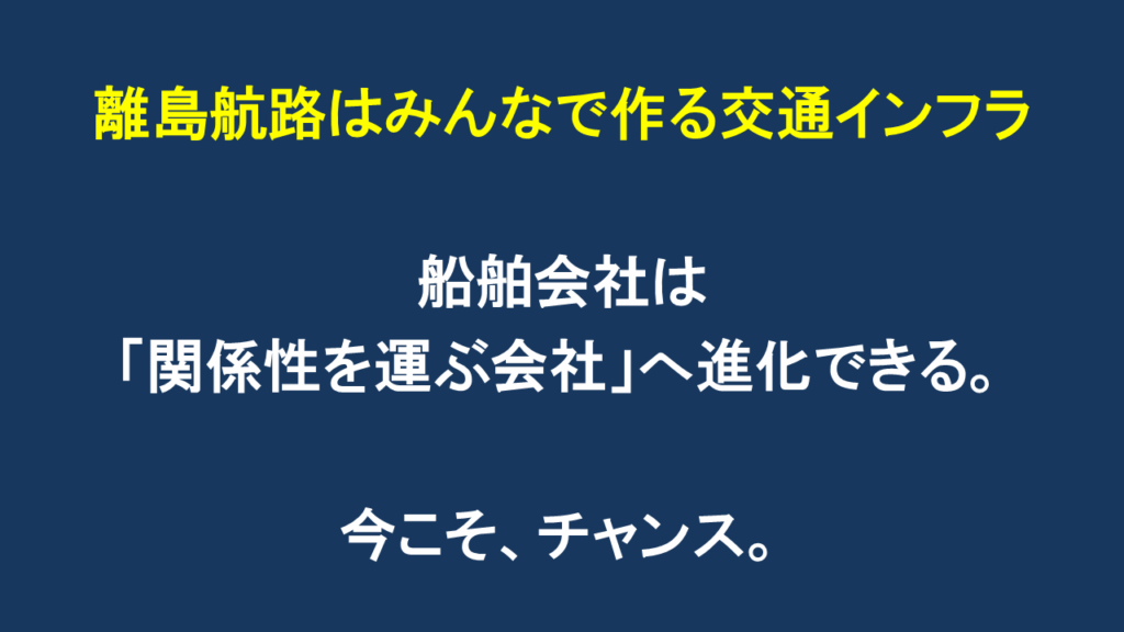離島航路は単なるインフラではなく、「人と人との関係性を運ぶ装置」です。