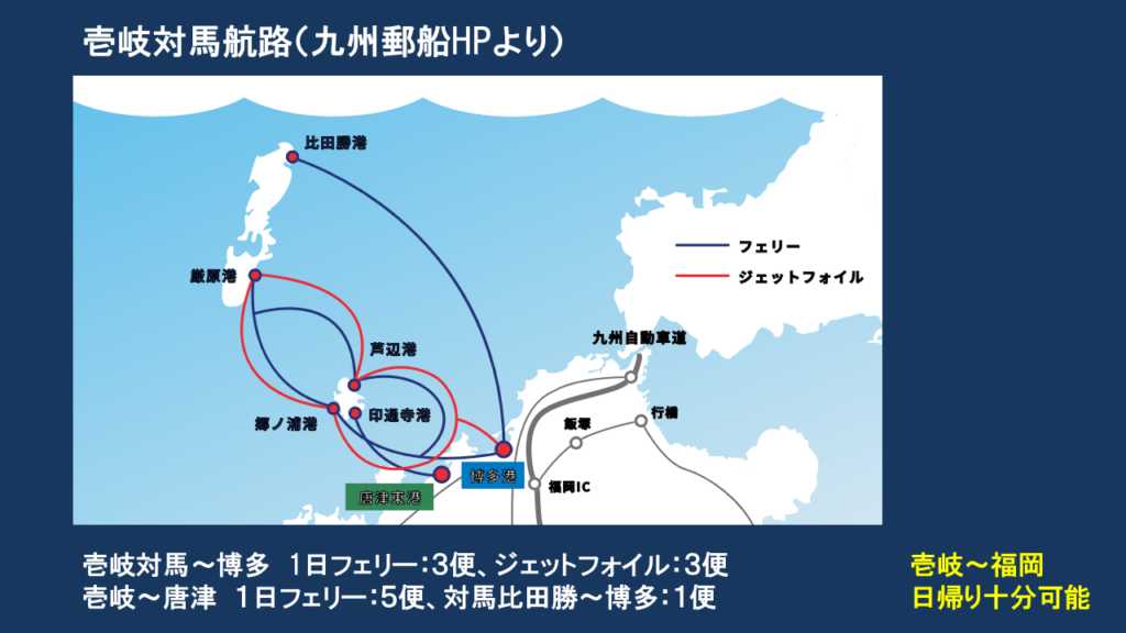 そもそも壱岐は九州本土、しかも、福岡市の都市部にすぐアクセスできる博多港と島がわずか1時間で結ばれている好アクセス環境は全国的に見ても、優位性が高いといえるでしょう。