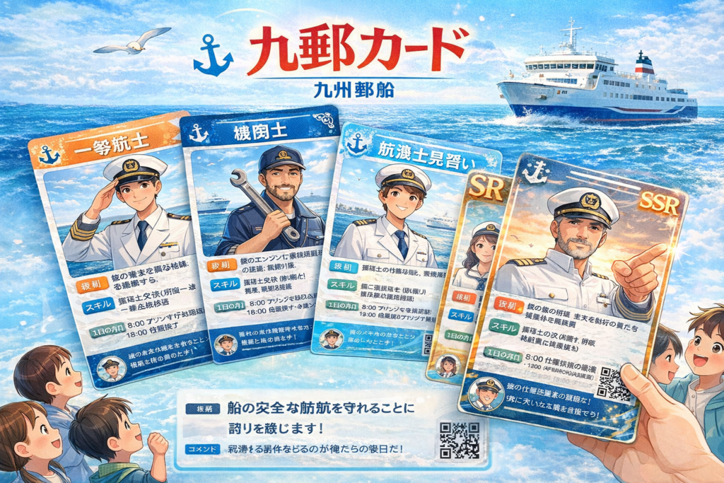 P.S 九郵カードとか作って、一等航海士、機関士といった職業や仕事を紹介するのは面白そうです。